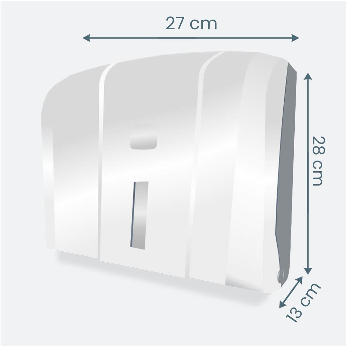 Wyciągnięcie jednego ręcznika powoduje wysunięcie następnego. Pojemnik wykonany z tworzywa sztucznego ABS. Posiada okienko do kontroli ilości ręczników w pojemniku Zamykany na plastikowy kluczyk. Montowany do ściany za pomocą kołków rozporowych (w zestawie)