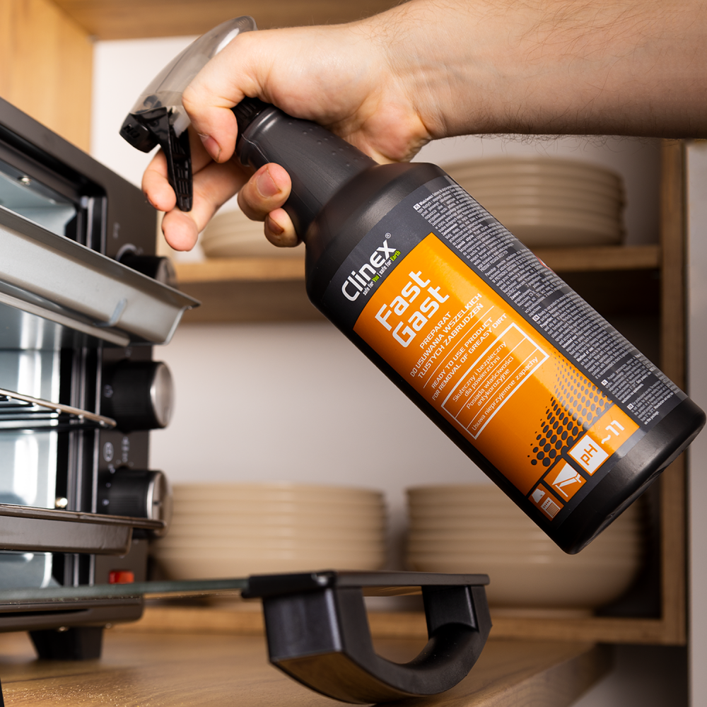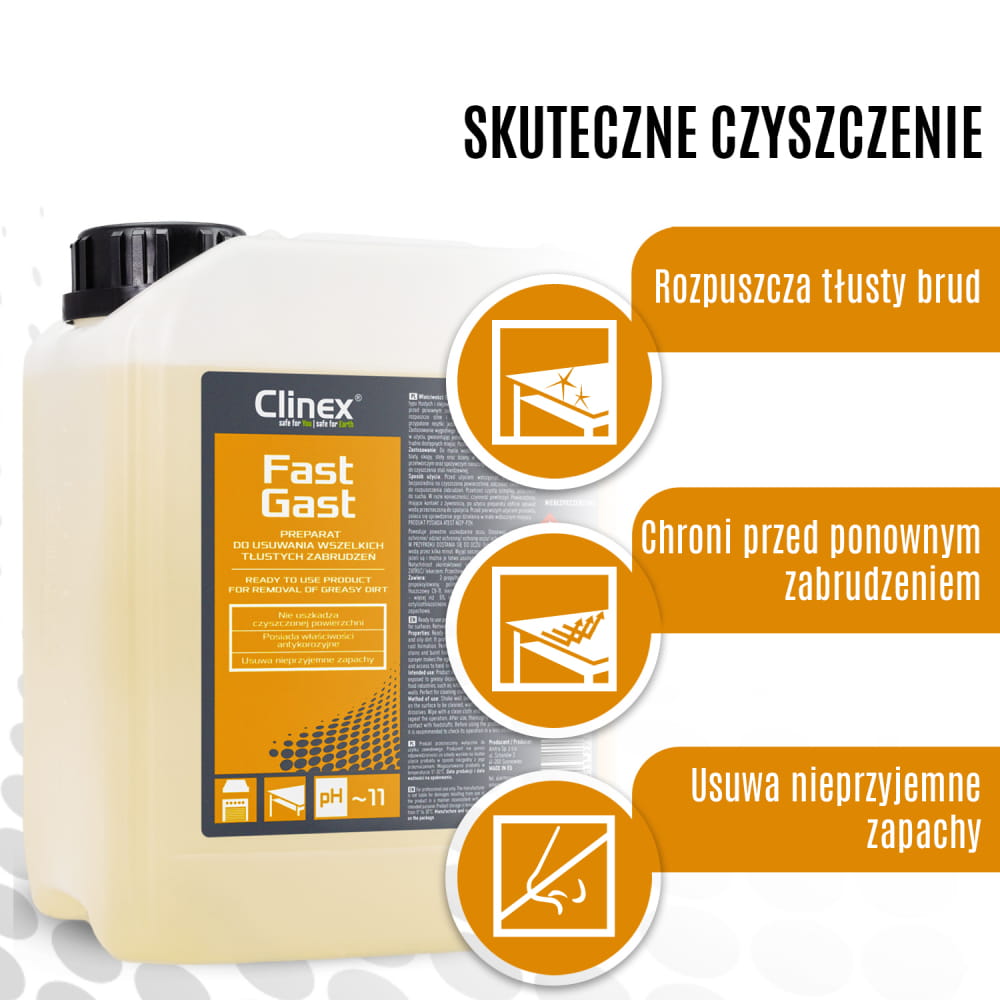 Posiada właściwości antykorozyjne – Produkt wzbogacony został o specjalne składniki, które dodatkowo chronią czyszczoną powierzchnię przed ponownym zabrudzeniem i powstawaniem rdzy. Dzięki zastosowaniu Clinex Fast Gast wydłużasz żywotność czyszczonych powierzchni i urządzeń.